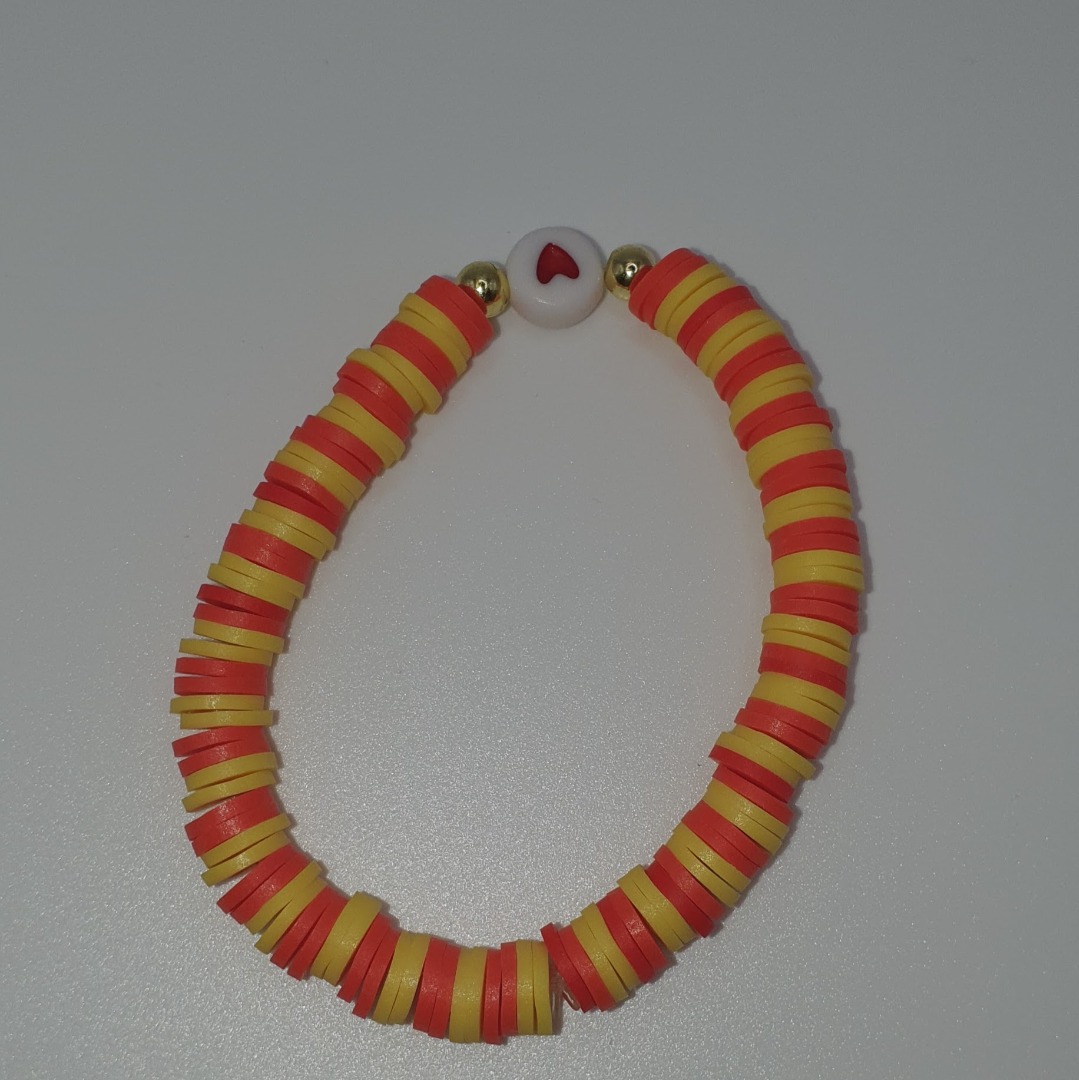 Armband geel en rood met rood hartje